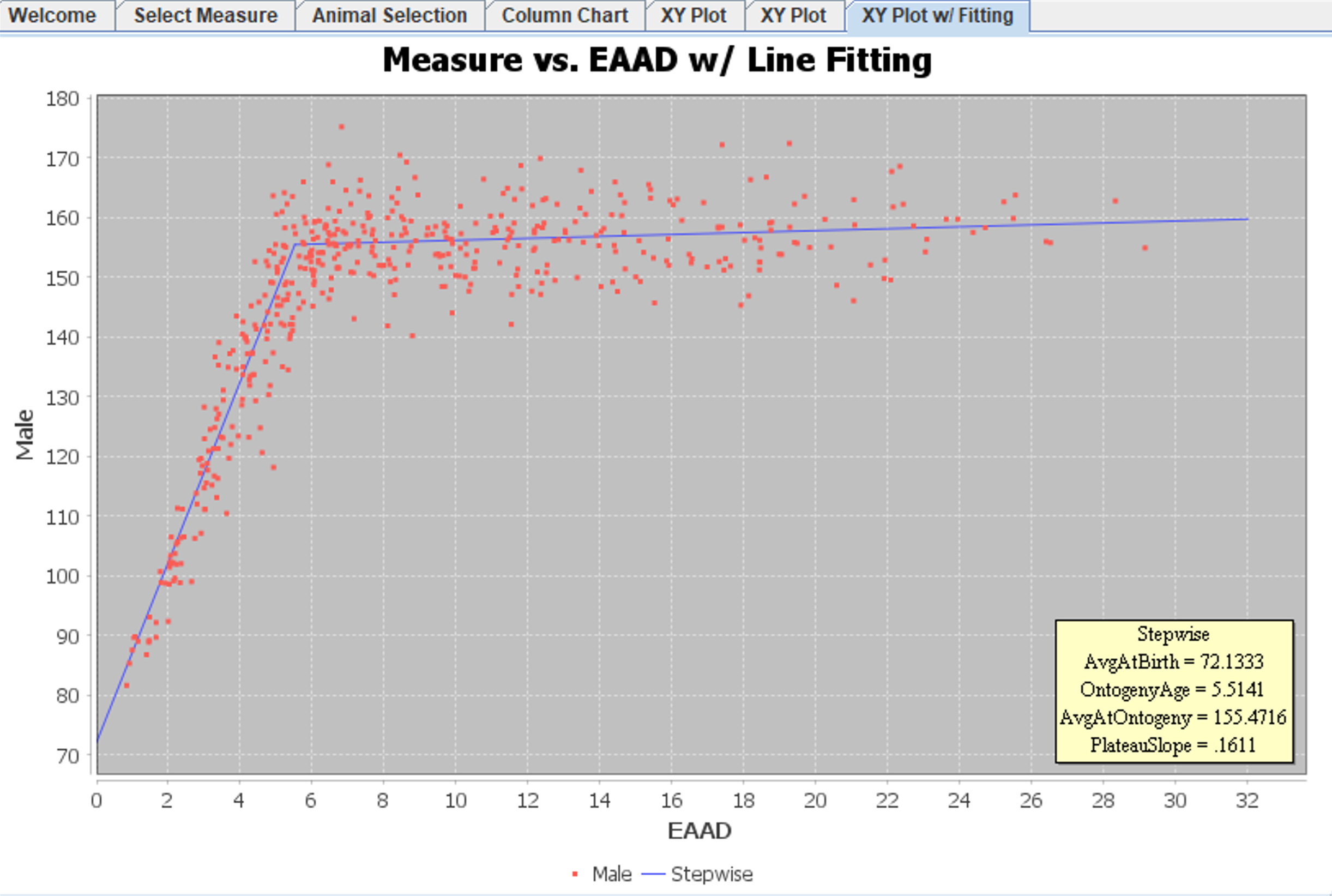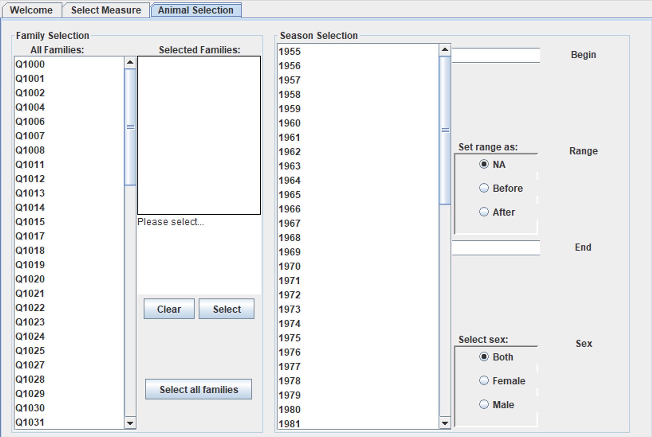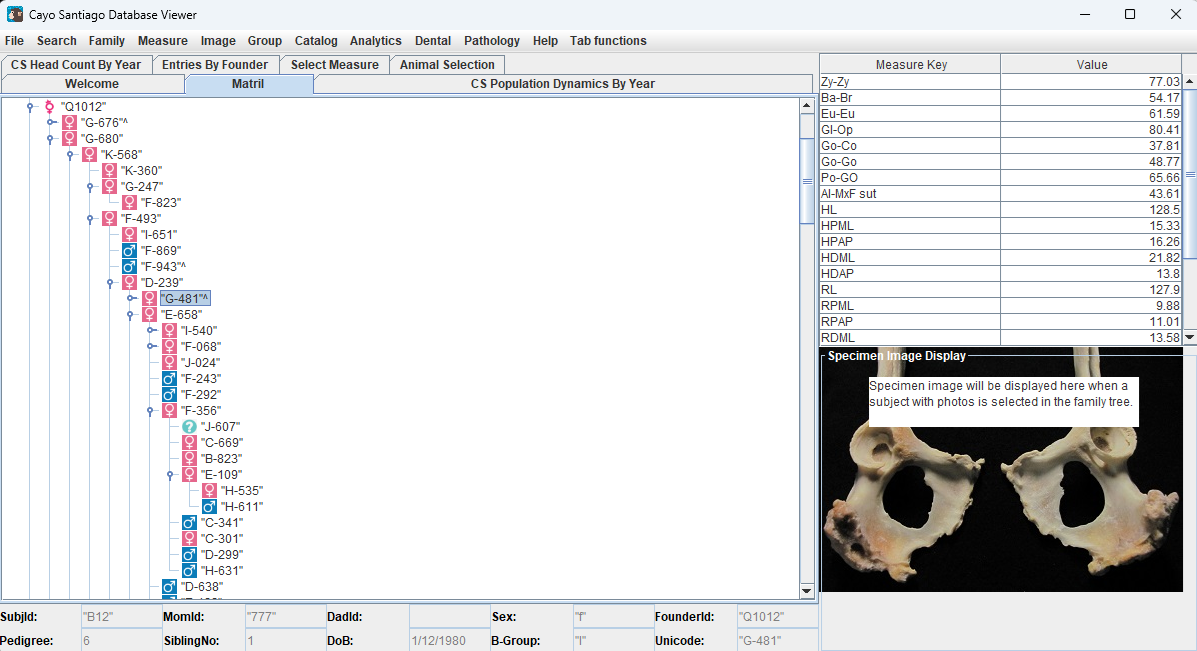 A subset of animal subjects and targeted bone measures can be selected using features on the Search menu and the Measure menu.