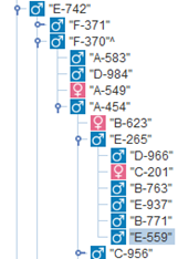 Kinship trees (with up to three levels of ancestors and then jump to the founders).