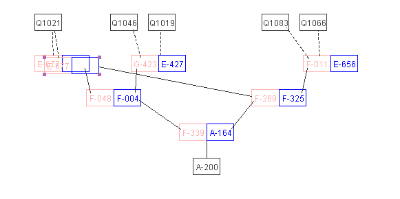 Show Kinship Tree for Subject A-200 (dashed lines indicating generations omitted)